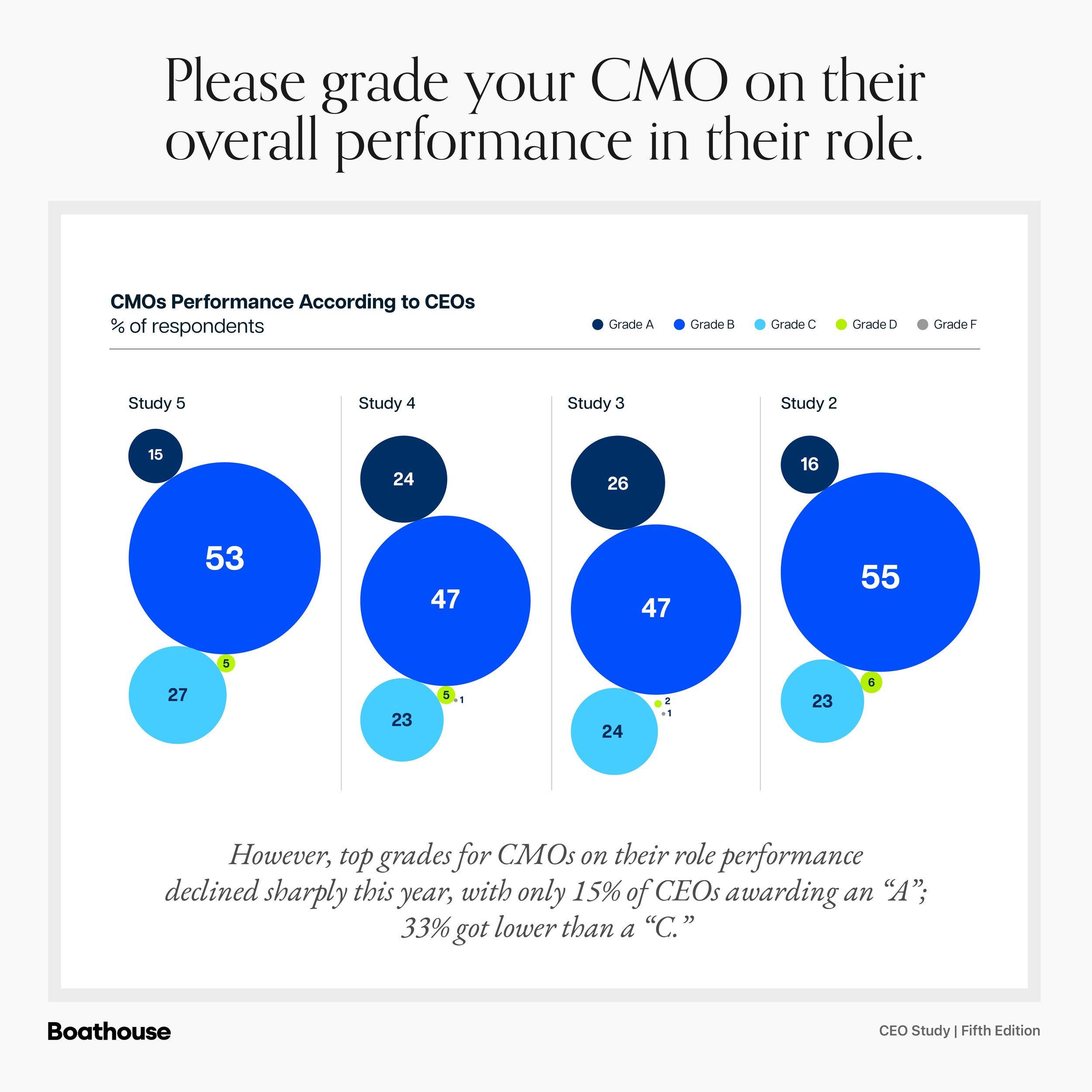 That shows up in how CEOs describe the role. Fifty-seven percent primarily see CMOs as execution leaders rather than strategic drivers, even though many are involved in strategic discussions.